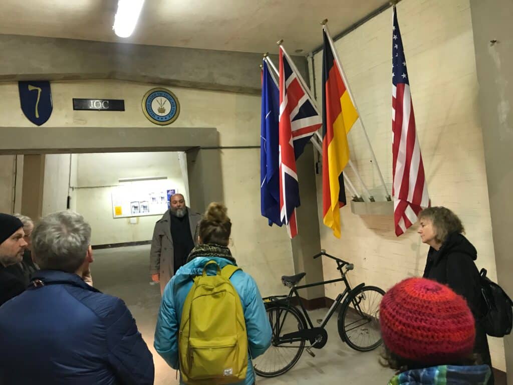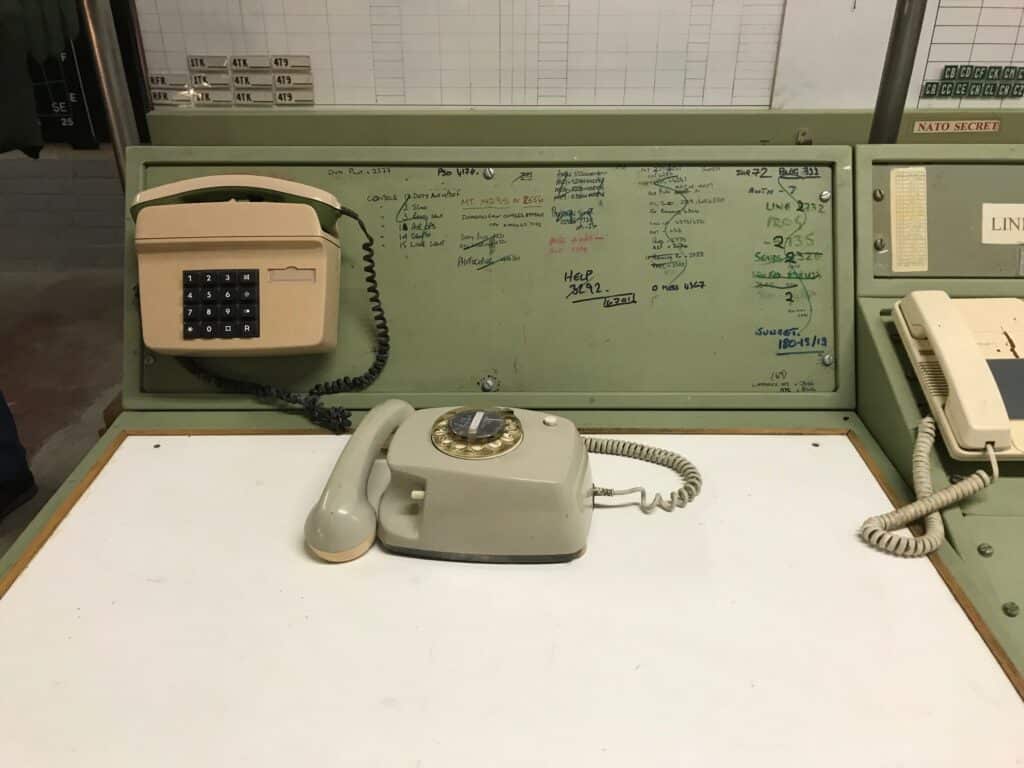 Surreal and, after decades of European peace, rather a blurred monument to masculine war technology: the NATO war headquarters PWHQ NORTHAG/2.ATAF JOC in Cannerberg. On our fiedtripp to Maastricht (20-21 October), the Limburg Landscape Foundation guided us through a parallel universe of 25 km of tunnels, which had its origins in the underground production facility built by the Nazis 1944. The Dutch War Ministry leased the facility on 15 April 1954 for a period of fifty years. During the daily main shift, an average of between 250 and 400 British, Dutch, Belgian, German, Canadian and American soldiers and civilian employees worked at the plant. During exercises, the number rose to the occupancy of more than 1000 people foreseen for an emergency. And all top secret! A large kitchen with canteen housed in the tunnels provided food in the bunker, a hairdresser for fancy Elvis Presley hairstyles and at a vending machine corner the crew could supply themselves with drinks and chocolate.
